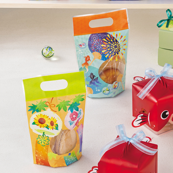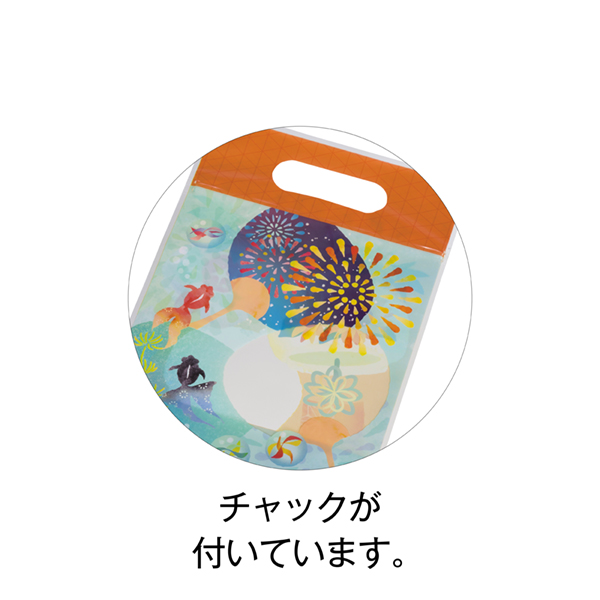 夏のモチーフをぎゅっと詰め込んだ、チャック付きの袋ギフト。表裏で違う柄を楽しめます。