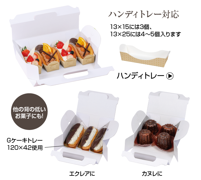 オムレットやエクレア、カヌレなど、背の低いお菓子におすすめのキャリーケースです。