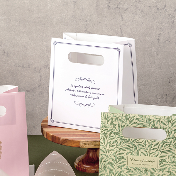 シュークリームや焼菓子のお持ち帰りにおすすめの紙製手提げバッグです。