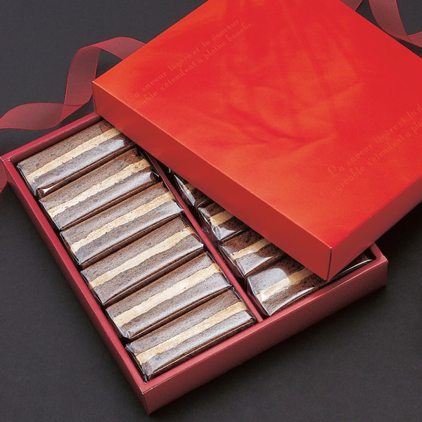 ガナッシュクリームをココアスポンジでサンドした、ソフトタイプのチョコレートケーキに最適なギフトケースです。