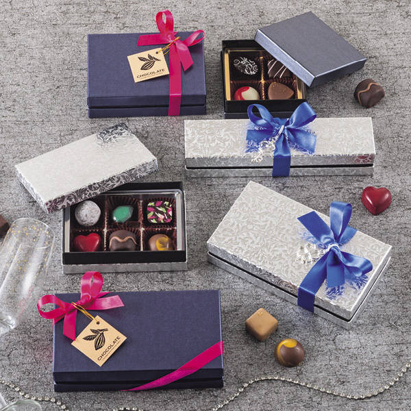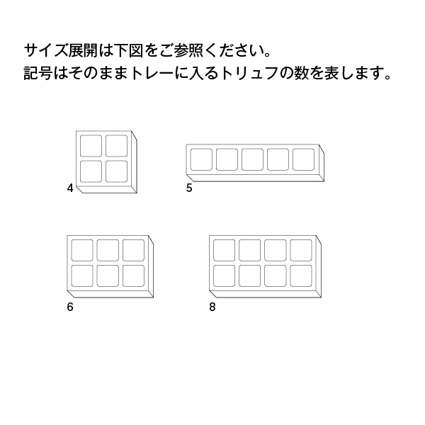 *貼箱完成品。フタ・ソコ・中箱・グラシンパット1枚・フィルム1枚・トレーの6点セット。* トレー1角サイズ30mm角×高20mm* 商品サンプルは有償です。